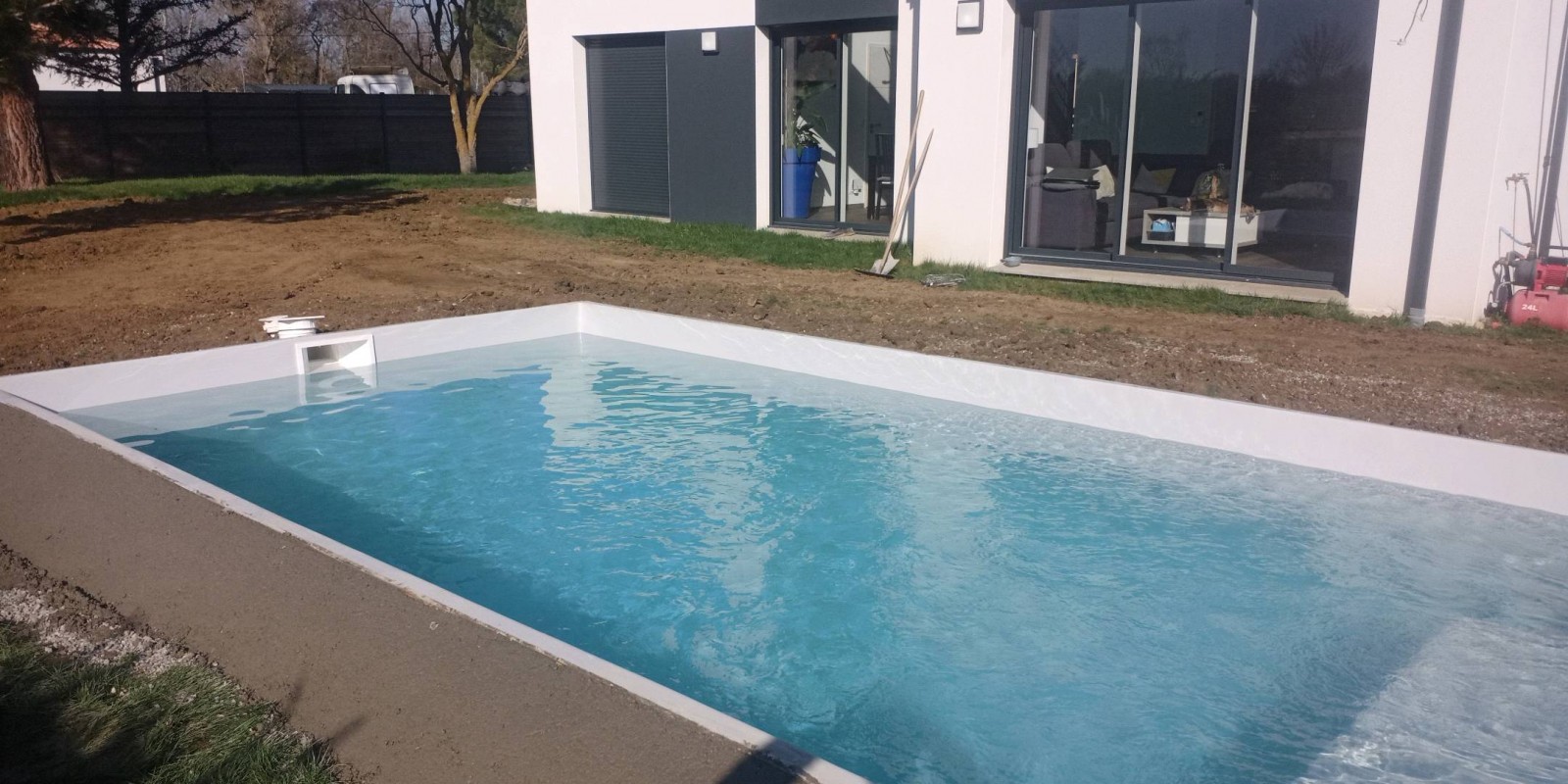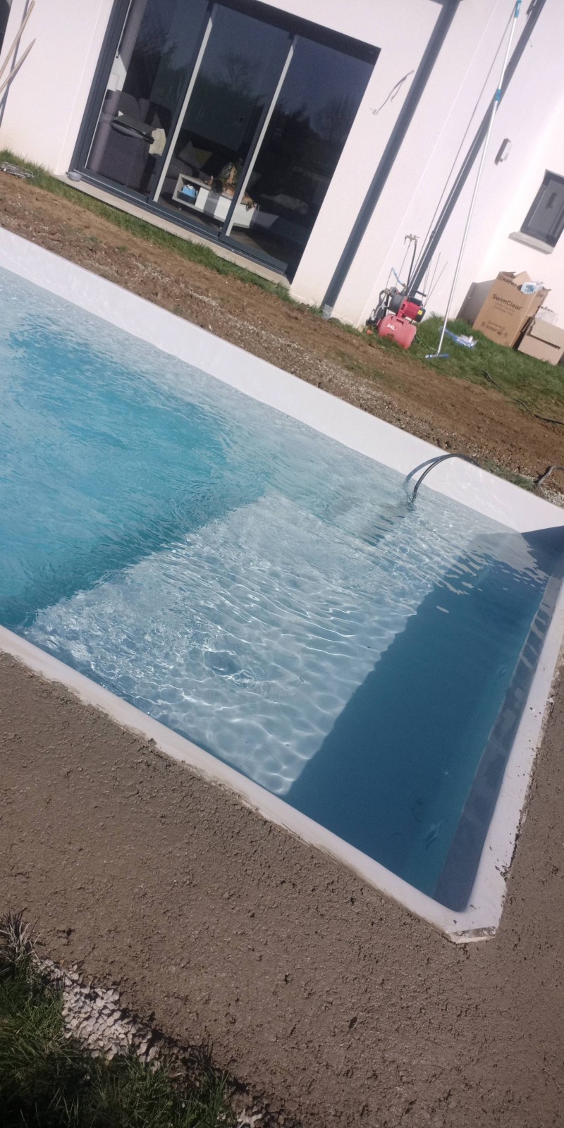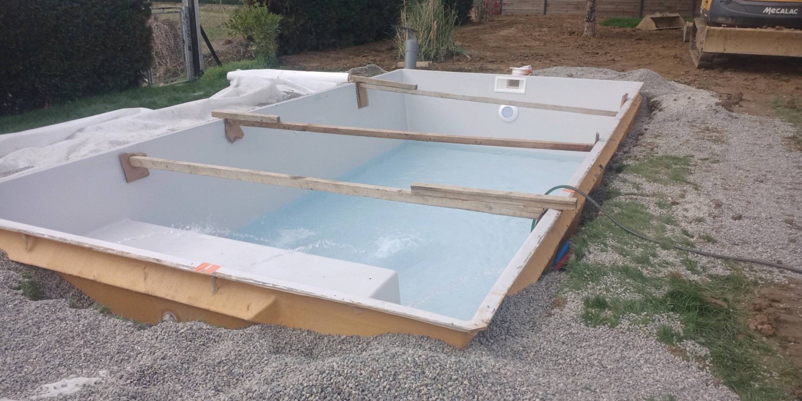 Jour 3 : remplissage de l'eau et remblais autour du bassin