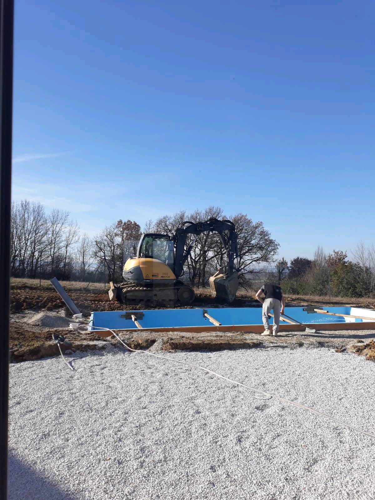 Installation faite à Castres pour ce modèle LAC DE GUERY 9,10m x3,80m avec fond plat et une plage immergée. Ce bassin est équipé d'une nage à contre courant et a pour finition des margelles Travertin beige bord arrondi.