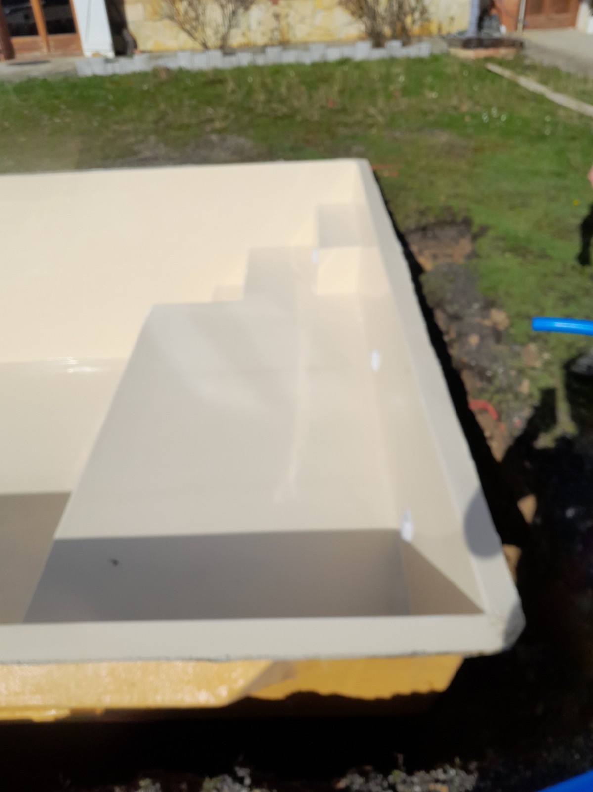 L'entreprise GTTP - Neptune Piscines est intervenue à Toulouse Secteur Sud coté Terrebasse pour réaliser le terrassement qui a permis l'installation de cette Piscine fond plat en coque polyester modèle ESTARI.